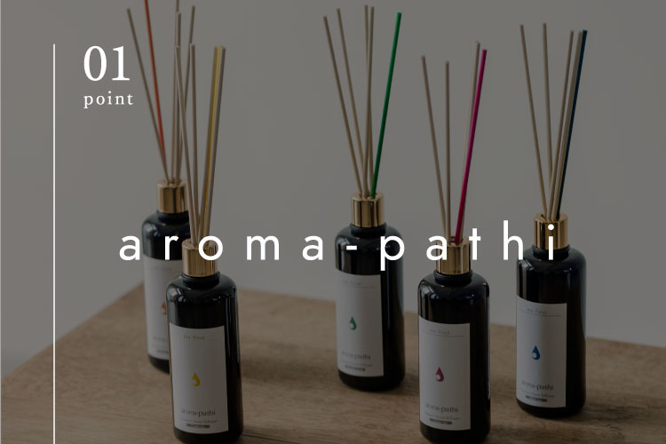 当店で使用販売しているアロマは「自然体の私、一番好きな私になれる」がコンセプトで、日常をサポートし、自分自身の心と身体と向き合い愛することができるボディケアブランドaroma-pathiと、原料は、産地や生育環境の厳格なセレクション後、厳しい検査を経て製品化された100%オーガニック製品、自然の恵みに溢れた心豊かな毎日を実現することができるフランスFINESSENCE精油です。